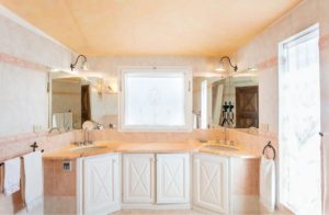 Surrounded by a garden with lawn and Mediterranean, it guarantees peace and privacy. The Villa was built on three levels and is composed of: well equipped kitchen, living room with TV area, living room with lunch zone and barbecue, six bedrooms, each one with their own bathroom.